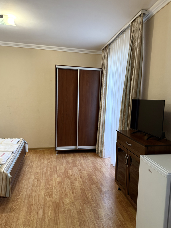 До пляжа пансионата всего 200 м. Так же в пешей доступности инфраструктура курорта: городской рынок, магазины, аквапарк, набережная с кафе, барами, дискотеками, ресторанами.