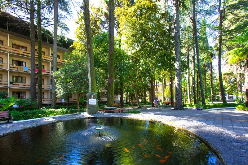 Отель на первой линии в Гагре. Отдохните в комфортабельном комплексе с бассейном рядом с пляжем. Питание "шведский стол", SPA.