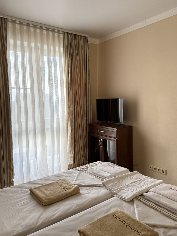 В стоимость входит: Проживание в номере выбранной категории, 3-х разовое питание «шведский стол», пользование пляжем, бассейном. Все остальные услуги, предоставляемые инфраструктурой пансионата, за дополнительную плату.