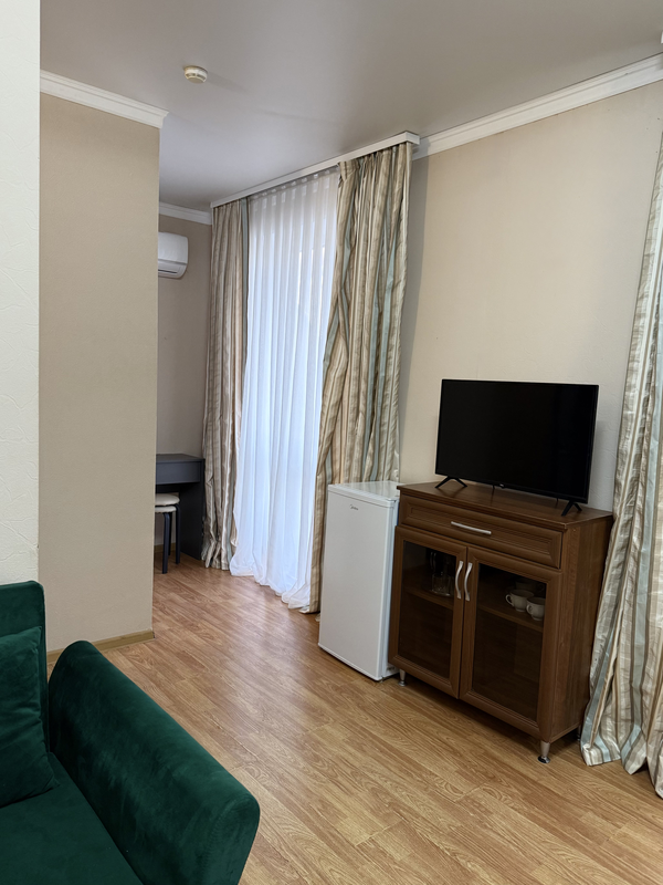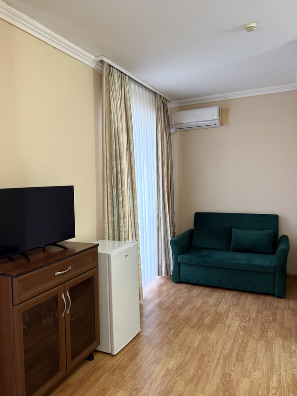 До пляжа пансионата всего 200 м. Так же в пешей доступности инфраструктура курорта: городской рынок, магазины, аквапарк, набережная с кафе, барами, дискотеками, ресторанами.